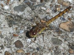 Nog enkele soorten die in de late herfst nog actief zijn. De Bruinrode- en de Steenrode Heidelibel vliegen op luwe plekjes in de natuurgebieden. Verder is ook de Paardenbijter nog te verwachten, Evenals Pantserjuffers. Dit zal weldra afgelopen zijn, en is het wachten tot het voorjaar. Bijgevoegd een foto van de Bruinrode heidelibel. Naast enkele andere kenmerken is vooral de voorzijde van de kop belangrijk. De bruinrode heeft een niet aflopende “snor” langs het ooggedeelte, terwijl de Steenrode wel een snor heeft. (ezelsbruggetje: Steenrode heeft Snor.)